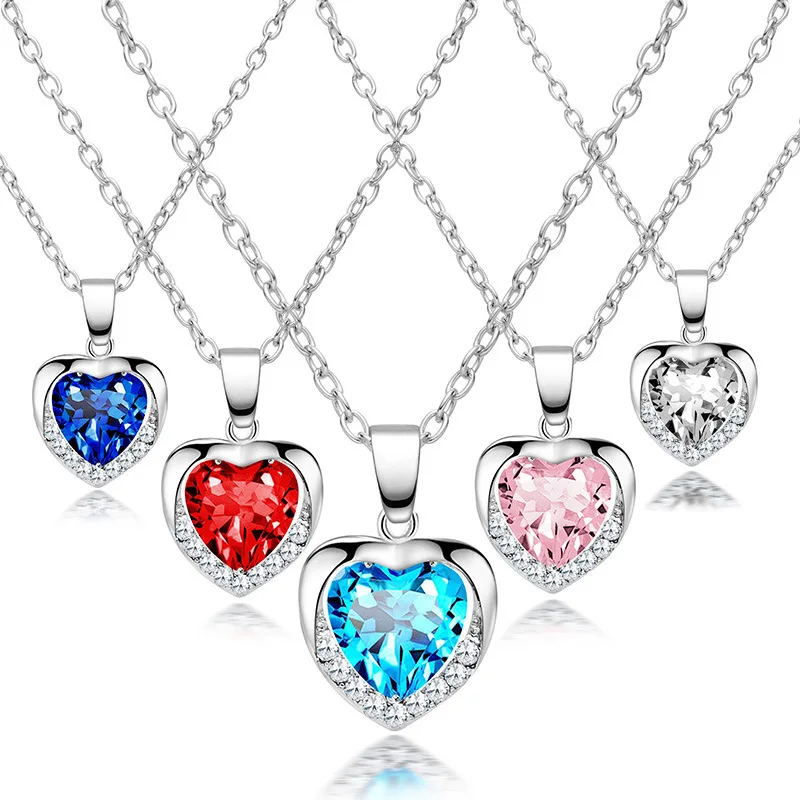 Cute BlingBling Heart Pendant Necklace Choker Ladies Zinc Alloy 5 Colors Crystal Heart drop Link Chain Necklace For Women Gift