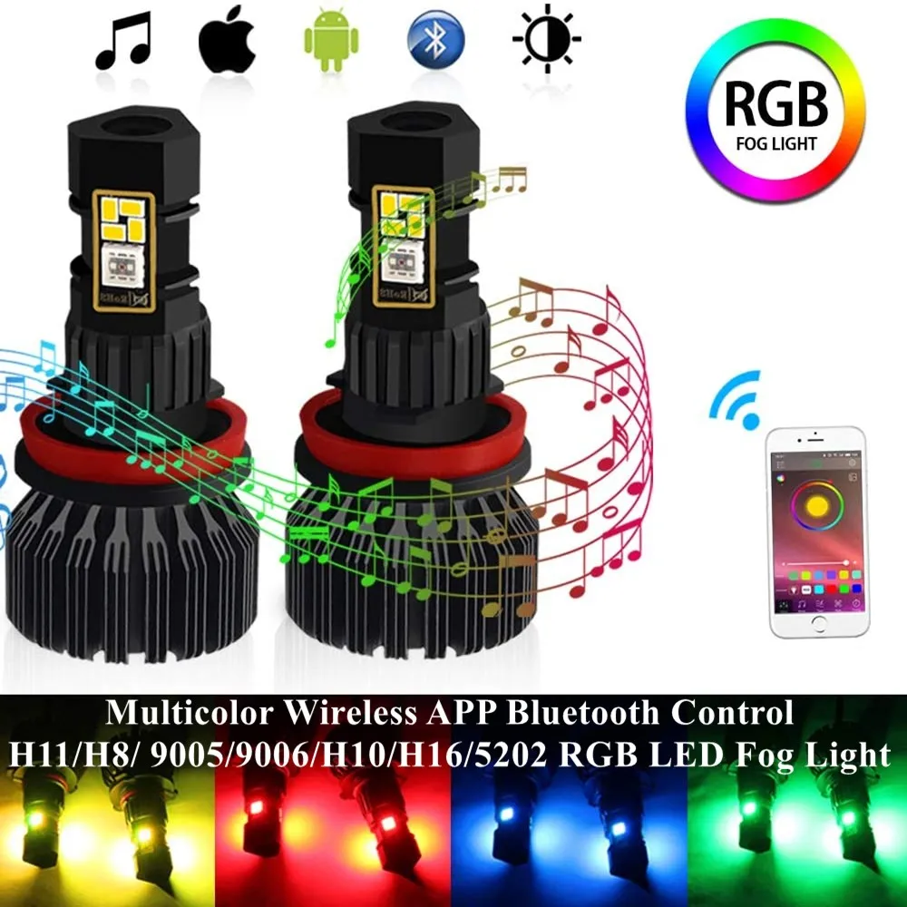 via 2PCS H11H8 90059006H10H165202 RGB LED Fog Light Bulb Multicolor Wireless APP Bluetooth Control 1800 Lumens DRL Fog Driving (Discount 53 % ) #2PCS #H11H8 #90059006H10H165202